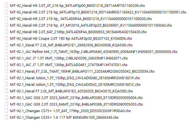 Модуль для редактирования МТ-92, МТ-92.1 для ChipExplorer 2 новых китайских авто. Список поддерживаемых в настоящее время софт привожу в скрине. Всегда при необходимости оперативно добавлю софт в поддержку. КС модуль не считает, это производится загрузчиками. Работает с прошивками 1,5Мб (МТ92), 2,5Мб (МТ92.1).